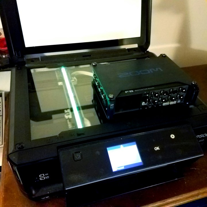 Photocopy your audio recorder. This will let yoi know 100% where the 1/4″ threaded mounting holes is under unit along with knowing how big the unit is on the 1U 19″ shelf. Cut out the audio recorder.