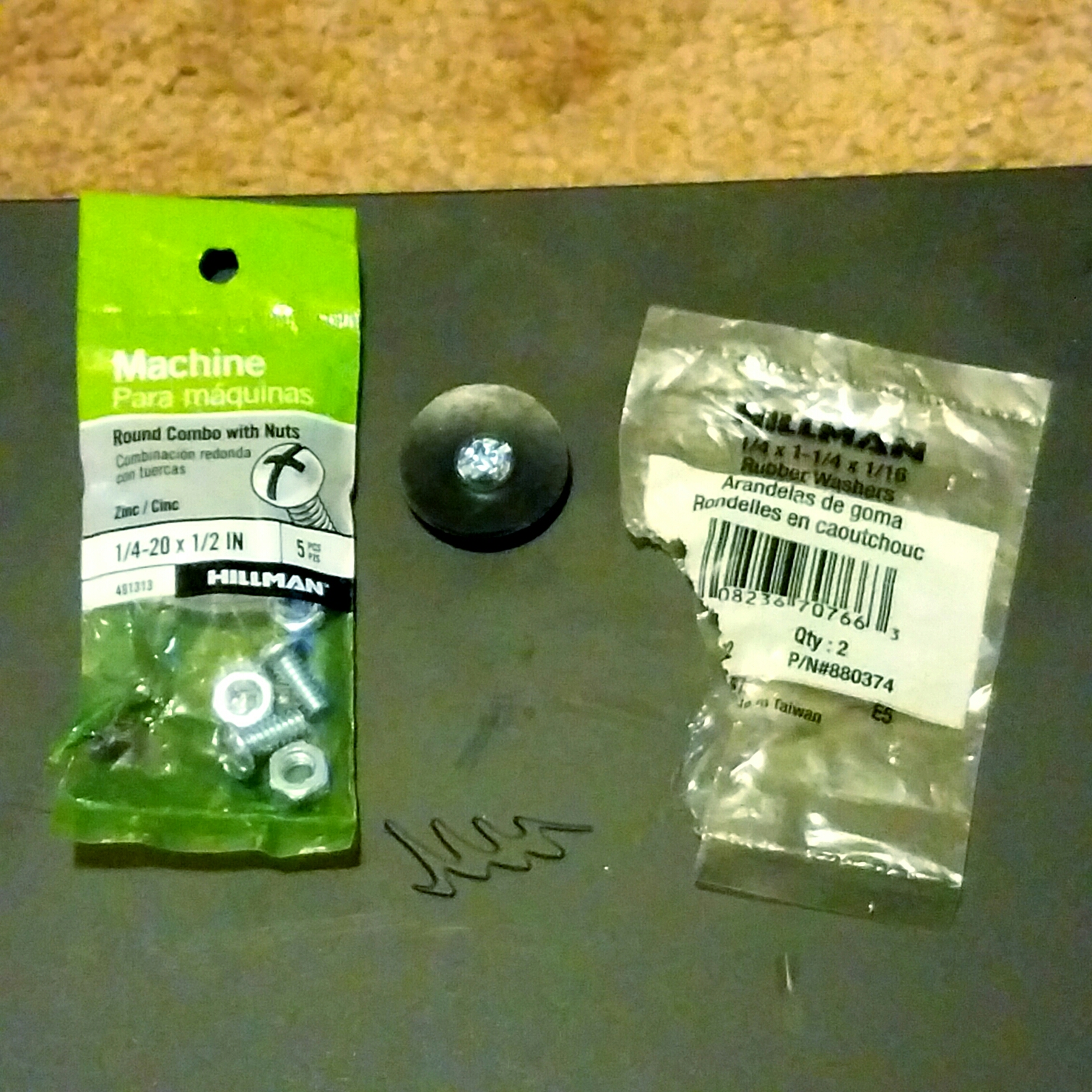 Screw it into place. I used 2 rubber washers as opposed to a lock washer. A lock washer could bend and damage the shelf if I ever reuse it for another purpose. The rubber washers will keep the screw from working itself out but not damage the shelf.