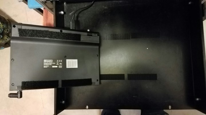 Now to rack mount the FRC-8 I went with 10lb Velcro. Because of the bevel on the bottom of the controller I placed a 8″ of Velcro across the top and bottom. I put the hook side on the sliding drawer and the soft loops on the control unit. This will allow me to use the control unit else where qithout causing future issues with soft surfaces. When placing the strips avoid covering up the battery compartment!