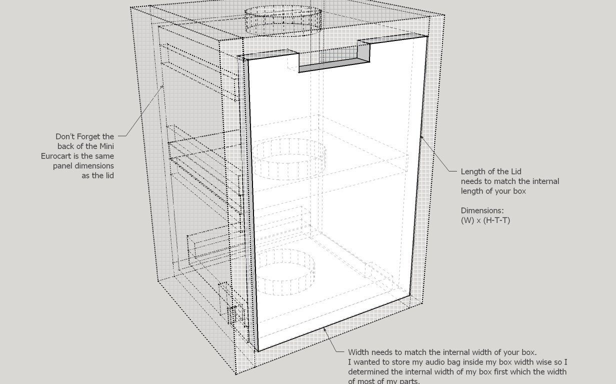 When you make the cuts for your end caps, ignore the words in this blueprint. Remember the End Cap panels are ( W)x(D+T+T). The addition of +T+T is to make up the difference for the thickness of the wood that is the lids.