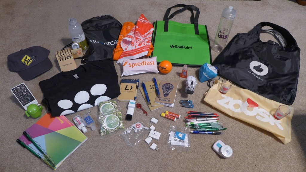 Most SWAG sucks. Those 3 LED flashlights thay run on 4 watch batteries… break really fast. Pencils? Who are We, Ted Mosby Architect? Tiny Swiss Army Knife… cool but TSA will take it from you unless you pay $25 to check that carry-on you brought to save the tiny Swiss Army Knife you got for free.