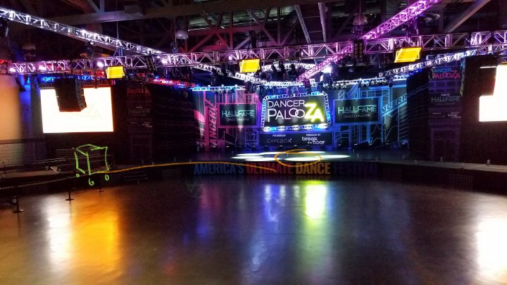 Each Orange-X is 2 Shure SLX4 wireless handheld 30mw kits. Each Red-X is a giant LED Video Wall that we know, from RF Venues Blog post, create all sorts of RF problems within 40ft of them… or in my case.. there isn’t much on the big stage that isn’t within 40ft of either video wall. Now frequency coordinating 8-9 wireless kits in a Shure freq band normally wouldn’t be an issue, but the SLX4 systems max out at running 12 safely in optimum conditions… and I needed to run 9 in less then ideal conditions. I should also note that the ceiling in this convention center is metal and metal I-Bean raffers. We could barely get phone signal. The venue has all the makings for a RF echo chamber. This is why I felt the RF Venue Spotlight would be perfect to test under the circumstances.