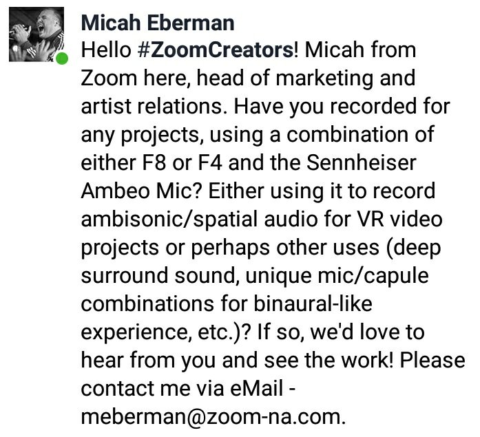 If you use a Zoom F8 and the Sennheiser AMBEO then Zoom wants to tell your story.