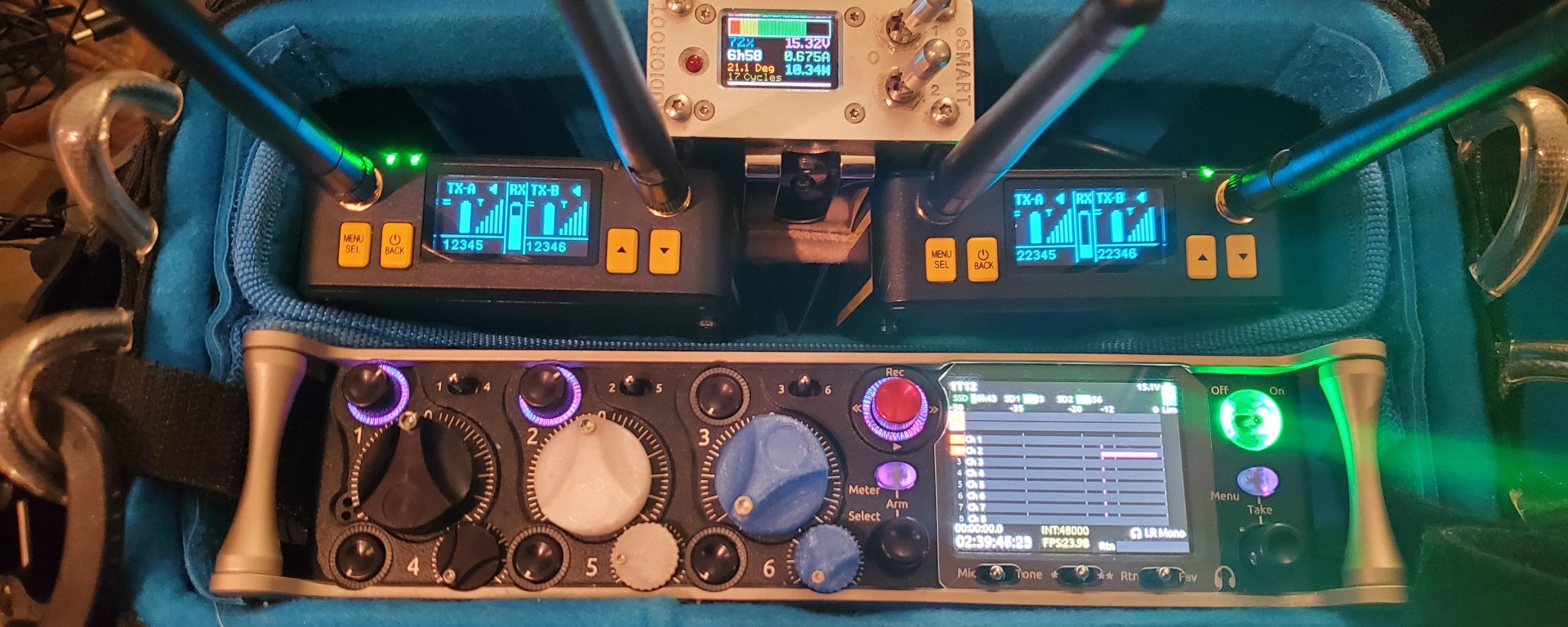 Let’s talk batteries. Now this crazy Franken-cable is what I have been using to test the DUO-RX receivers in a bag. I have an Audioroot BDS, with a hirose to dual 2.1mm DC cable, which I got from my Lectro bag. I have 2.1mm DC to USB-A female adaptors, and then short USB-A to USB-C cables to feed power into the receivers. Works like charm, even though long term, I would like to get hirose to USB-C cables made. Fewer points of failure would be optimum.