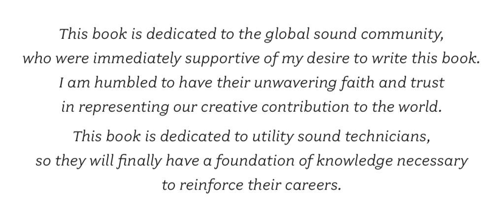 While this book is primarily devoted to Utility Sound Technicians, as I pointed out above, it is also extremely helpful for the rest of the sound department. I also strongly suggest that anyone who works on a film set in any capacity read it, because it contains many insights that apply to being part of a crew in general.