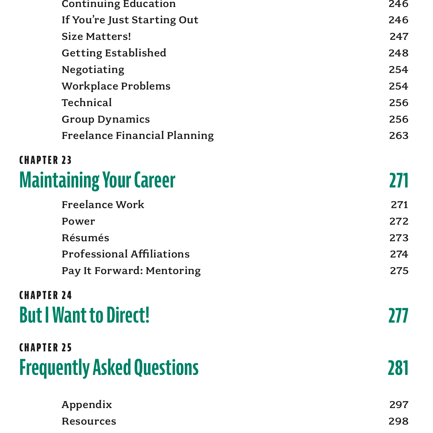 As you can see from the chapter list above, Patrushkha takes her time to be thorough and incredibly organized. You could call this a literal handbook as much as you could also call it a memoir or an attestation of the field itself. When she delves into an aspect of the job, she does it with context. It’s never some dry encyclopedia entry about simply “what is this department?” or “what does a Utility do?”, but at the same time it manages to answer all of those types of questions while being entertaining and profound.